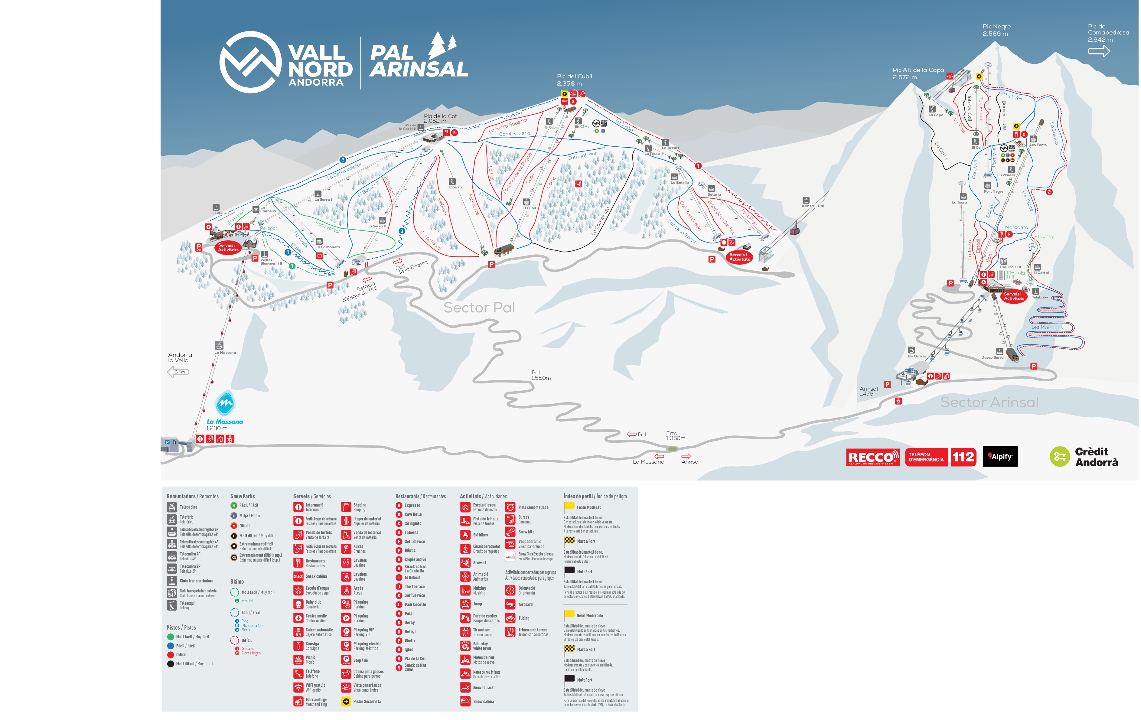 - Transporte: Servicio de autobús gratuito enlazando los 2 sectores: Arinsal y Pal (La Massana)