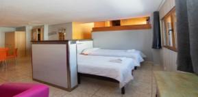 Los estudios tienen capacidad para entre 2 y 5 personas, mientras que los apartamentos tienen capacidad para entre 2 y 6 personas. Los estudios tienen camas individuales, mientras que los apartamentos tienen también una cama doble.