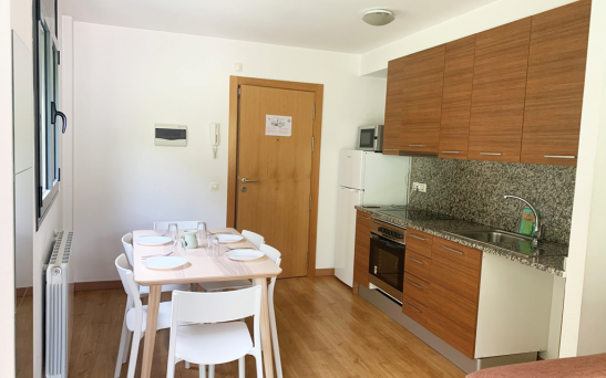 Los apartamentos están totalmente amueblados y poseen baño completo, televisión y cocina equipada con frigorífico, microondas, placas y menaje adecuado a la capacidad de cada unidad.