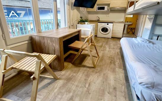 Estudio 2/3: Sofá cama doble y litera / cama individual en el salón, cocina abierta al salón y baño.