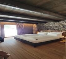 SUITE DE LUXE: Confortable y espaciosa habitación, con terraza privada, vistas y acceso directo al jardín y al lago. Dispone de una cama queen size de la marca Vispring, uno de los mejores colchones del mundo, smart TV-satélite con pantalla plana, dispositivo móvil y baño privado con ducha y rain effect.