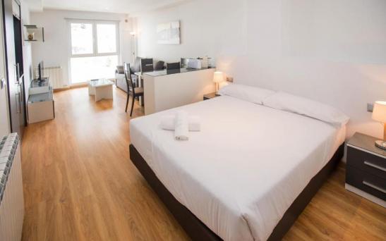Estudios con capacidad para hasta 4 personas, distribuidas en un solo ambiente con cama doble, salón comedor con sofá – cama y cocina. En cuanto a sus dimensiones, tienen unos 38m2 aproximadamente, y cuentan con cuarto de baño totalmente equipado.