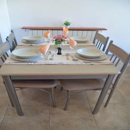 60m2 Consta de dos dormitorios. Salón comedor con sofá cama y baño. La concina está equipada con lavadora, microondas, fogones, nevera y congelador, tostadora, tetera.